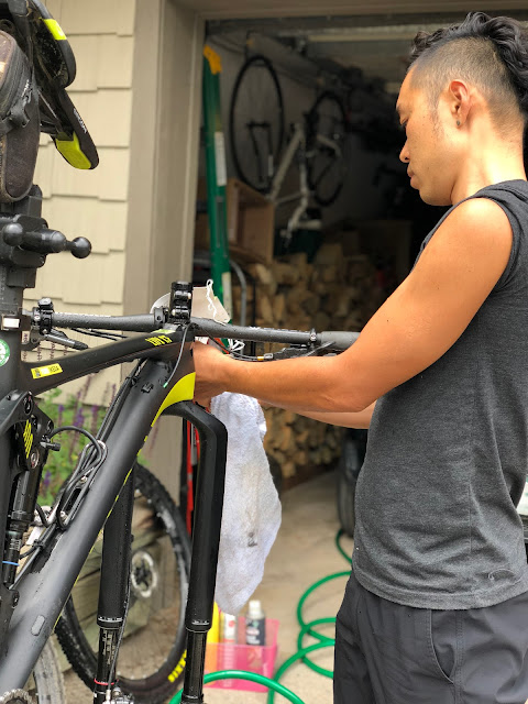 帰宅後は昨日のレースで頑張った愛車の洗浄&メンテナンス。